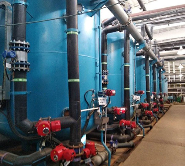 Предназначена для очистки возвращаемого от потребителей пара конденсата производительностью 320 м3/ч, работающей по схеме: двухступенчатая фильтрация на угольных фильтрах, Na-катионитовое умягчение. Далее конденсат направляется на доочистку на установке обессоливания.